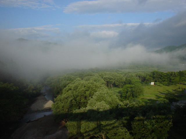 雲じゃなくて朝の霧ですよ。