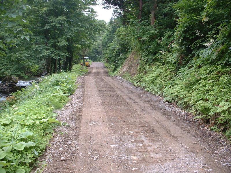 湯の華間欠泉までの道路7キロ区間は砂利道です。