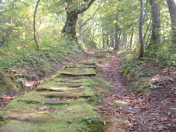 ブナ林の中に、ひっそりと息づく石畳の苔の美しさは必見です。