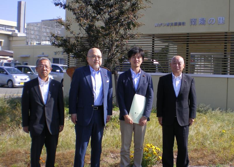 9月25日、衆議院議員の鈴木憲和議員に南陽の里を訪問していただきました。理事長、事務局長と共に、施設の現状や直面している課題について詳しくご説明し、新規事業の計画についてもお話しをする絶好の機会となりました。
