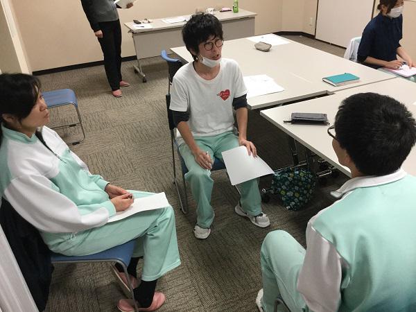 入職してから3〜5年程度の職員を対象とした「中堅職員研修」を行いました。上司と後輩に挟まれて一番大変な思いをしながら頑張っているのがこの中堅の職員です。日々の業務に追われながらも、上司や後輩と上手にコミュニケーションをとるのはとても大変なことです。そこで今回の研修では、ご利用者やご家族の方々ではなく、職場内や関係機関との上手なコミュニケーションのとり方、持ち方を学びました。講師の先生からは「うんうん、そう!そういうことあるんだよね・・・」と共感のある内容での講義で、とても勉強になったようです。最後に講師の先生から、今日受講した職員の日頃のコミュニケーションのとり方や考え方、介護のプロとしての視点についてお褒めいただき、皆はにかみながら笑顔を見せていました。これからもその心を忘れずにいてくださいね。
