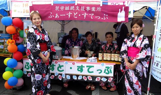 7月7日に上山城周辺にて開催された「やまがたワインバル」に、ふぁーすと・すてっぷのワインを出品しました。心配されていた雨も午後からやみ、曇り空ではあるものの、心地よい風が吹き、良いワイン日和となりました。お客さまからは「ぶどうの香りは甘くてフルーティー、味は辛口ですっきりして飲みやすいね〜」と感想もあり、ご好評を頂きました。来年も美味しいワインを作り参加しますので、楽しみにしていてくださいね。