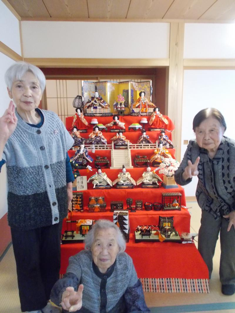 グループホームおおさとにて雛祭り行事、さくら餅作り、お抹茶たてを行いました。