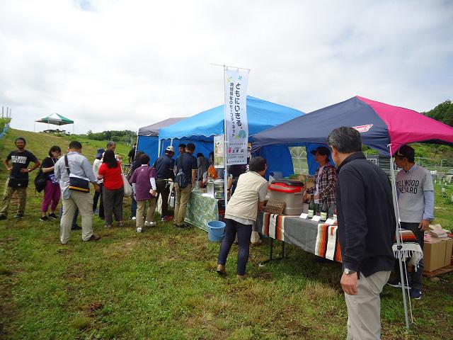 6月9日(日)「やまがたワインツーリズム」に今年も友愛会のワイン「First step」を出品いたしました。ワインツーリズムとは、当日限定のワイナリーを巡るバスを使い、参加される方が好きな地域をめぐり、ワインのできる畑などを見学しながら楽しむというイベントです。当日は天候にも恵まれ、爽やかな空気を感じながらワインを楽しまれておりました。外で味わう「First step」もまた、格別ですね。
