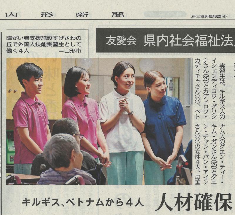 すげさわの丘に新しい風がやってきました!外国人技能実習生として9月11日にキルギスから2名、9月27日にベトナムから2名が入職し、介護のお仕事を実践しております。