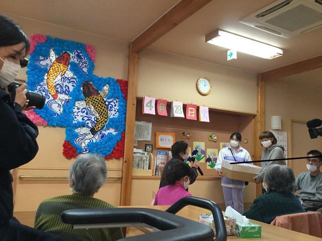 就労支援事業所「ふぁーすと・すてっぷ」で作製し完成した300枚の布製マスクを、法人内の「デイサービスセンターくろさわ」の利用者の方に贈呈しました。