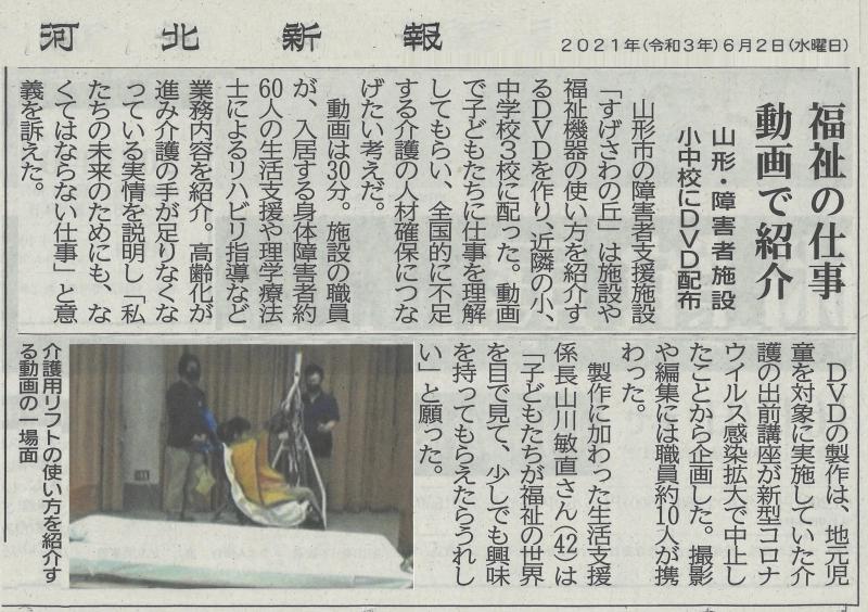 河北新報さんに取材にきていただきました(2021年6月2日掲載)