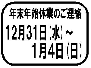 12月31日(水)から来年1月4日(日)まで年末年始休みとさせていただきます。