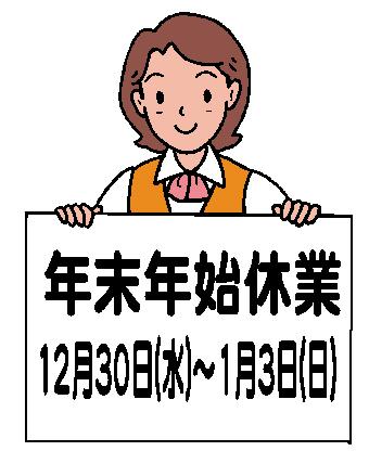 平成21年12月30日(水)〜平成22年1月3日(日)まで年末年始休みと致します。