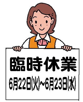 6月22日(火)〜6月23日(水)は都合により臨時休業とさせていただきます。