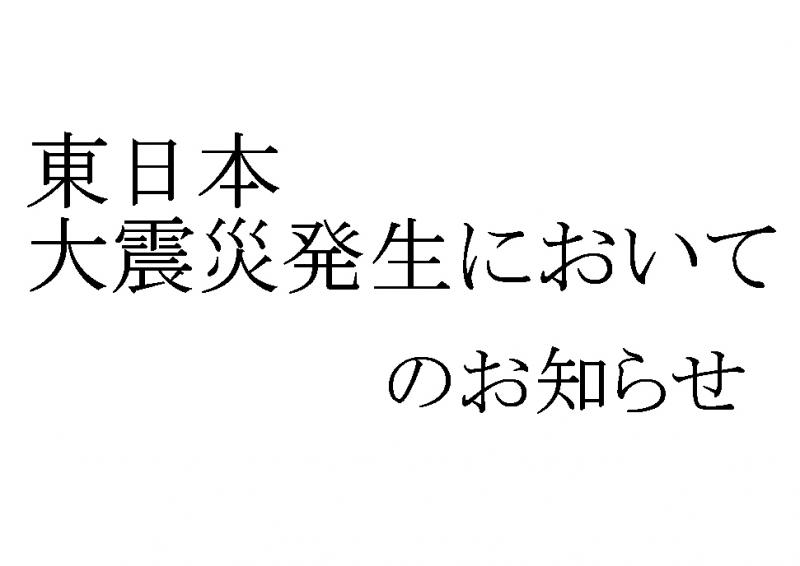 3月11日に発生した東日本大震災の発生において、被災された地域の方へのご心痛を察し心よりお見舞い申し上げます。また、お亡くなりになられた方のご冥福をお祈り申し上げます。