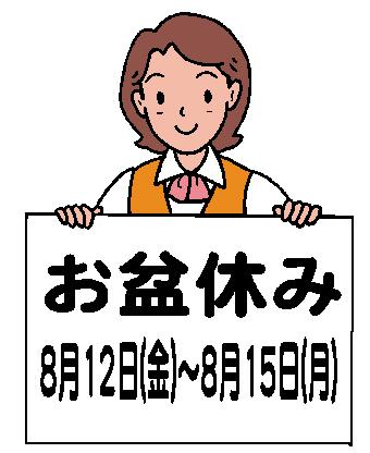 8月12日(金)から8月15日(月)までお盆休みとさせていただきます。