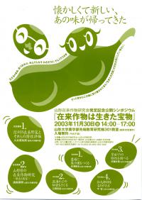 2003年11月30日に山形在来作物研究会発足記念シンポジウム「在来作物は生きた宝物」が山形大学農学部で開催された。 記念講演として信州大学農学部の大井美知男氏による「信州の在来野菜とそれらの特性評 ...もっと詳しく