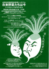 2004年12月4日に在作研第2回シンポジウム「在来野菜たちは今ーその現状と可能性を探る」が山形大学農学部で開催された。 第1部では宮城県上沼高等学校教諭の佐々木 寿氏による「東北地方における在来ダ ...もっと詳しく