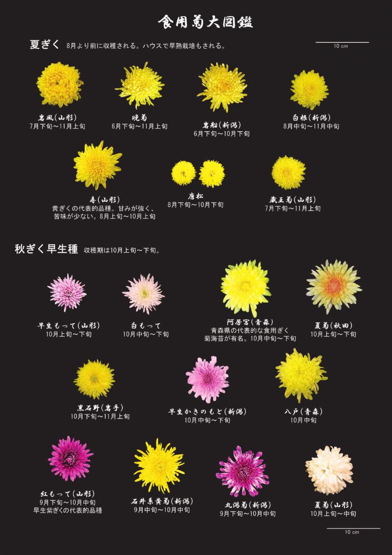 ▼これ全部食べられる菊です!〜食用菊大図鑑の紹介