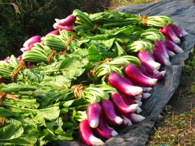 播種は9月5・6日から25・26日ころで、収穫は11月13日以降とのこと。寒くなるにつれて甘みを増し、干してもよく乾燥するようになる。山形県の在来野菜と状況はよく似ているが、津田カブの生産も高齢化が進み、後継者がいないことが心配されている。(島根県探訪記ーおわり、原隆志先生、現地の案内ありがとうございました)