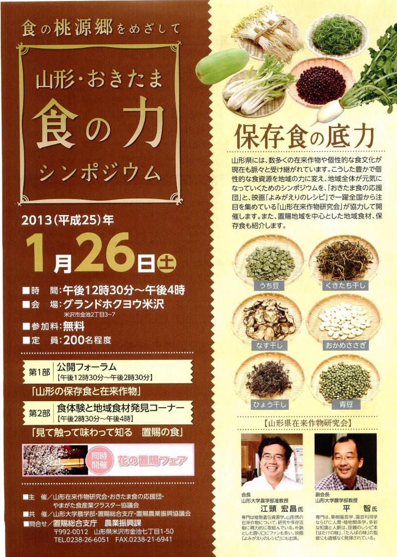 テーマは「保存食の底力」。震災後、保存食が注目を集めていますが、山形県は置賜地方を中心に保存食の種類が実に豊富で宝庫とも言えます。山形県の保存食の豊かさを全国に発信したいと思います。