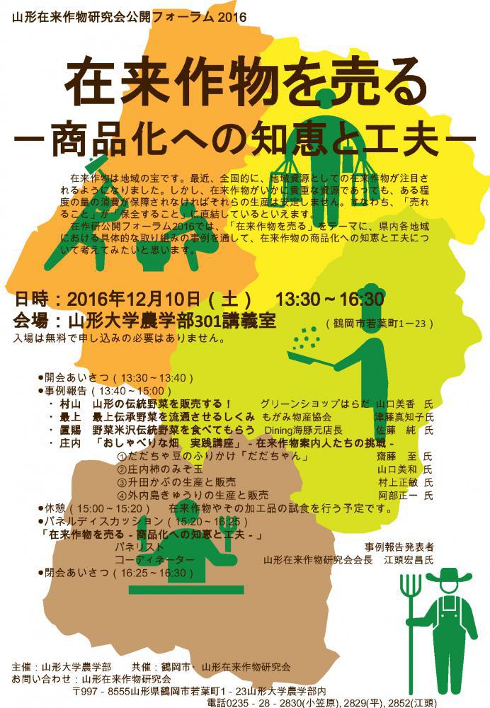 主催:山形大学農学部、共催:鶴岡市・山形在来作物研究会