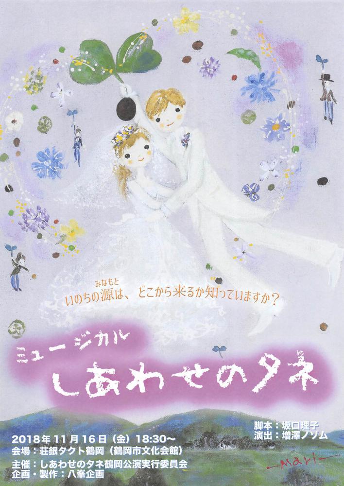 在作研公開フォーラムの前日11月16日、夕方18:30から(開場は18:00)、荘銀タクト鶴岡にて、ミュージカル「しあわせのタネ」が上演されます(チケットの入手方法は来週告知します)。