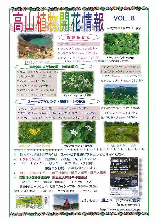現在、コマクサ・イワオドリ・ハクサンシャクナゲなどが見頃です。