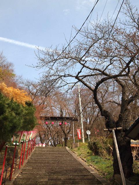 新年度を寿ぐような陽気の良い朝です。記念館から仰ぎ見る烏帽子山も色づいてきたように感じ、烏帽子山まで出かけてきました。烏帽子山の桜開花を知らせる御神坂の標準木のつぼみは、先に花びらのピンク色がのぞいていて、開花まであと2・3日といったところでしょうか。4月18日には大鳥居の注連縄掛け替え神事(過去の神事についてはhttps://samidare.jp/0524yuuki/note?p=log&lid=538218)が行われます。その頃の桜の様子が気になるところです。