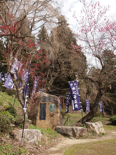 南陽市は江戸時代後期に「刀剣復古論」を唱え新々刀の祖と称えられた刀匠・水心子正秀のふるさとです。八幡宮様には御神宝として脇差が奉納され、御朱印の授与もなさっています(参考:https://www.ne.jp/asahi/eboshiyama/hachimangu/service.html)。境内には顕彰碑があり、梅が満開でした。ぜひお立ち寄りいただければと思います。