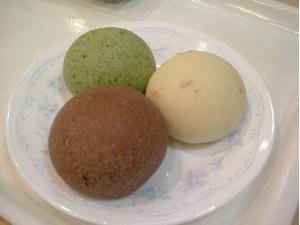 とてもモチモチとした食感で、まんまるなかわいいパンです。よもぎ・くるみ・チョコ味の3種類が入っております。ぜひ、ご賞味ください。