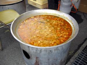上山市商工会・石崎商店会の主催により開催中の「石崎かっぱ市」にて、十日町未来会より提供されております「カレー味のあったか未来鍋」です。