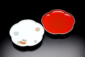 寿赤絵 梅型八寸皿 径24.5p(左)(税込)
