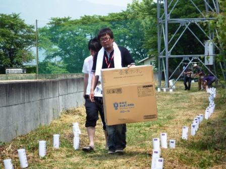 長井市青年連絡協議会、横町青年団のお手伝いの元、総勢40名ほどで作業を進めました。