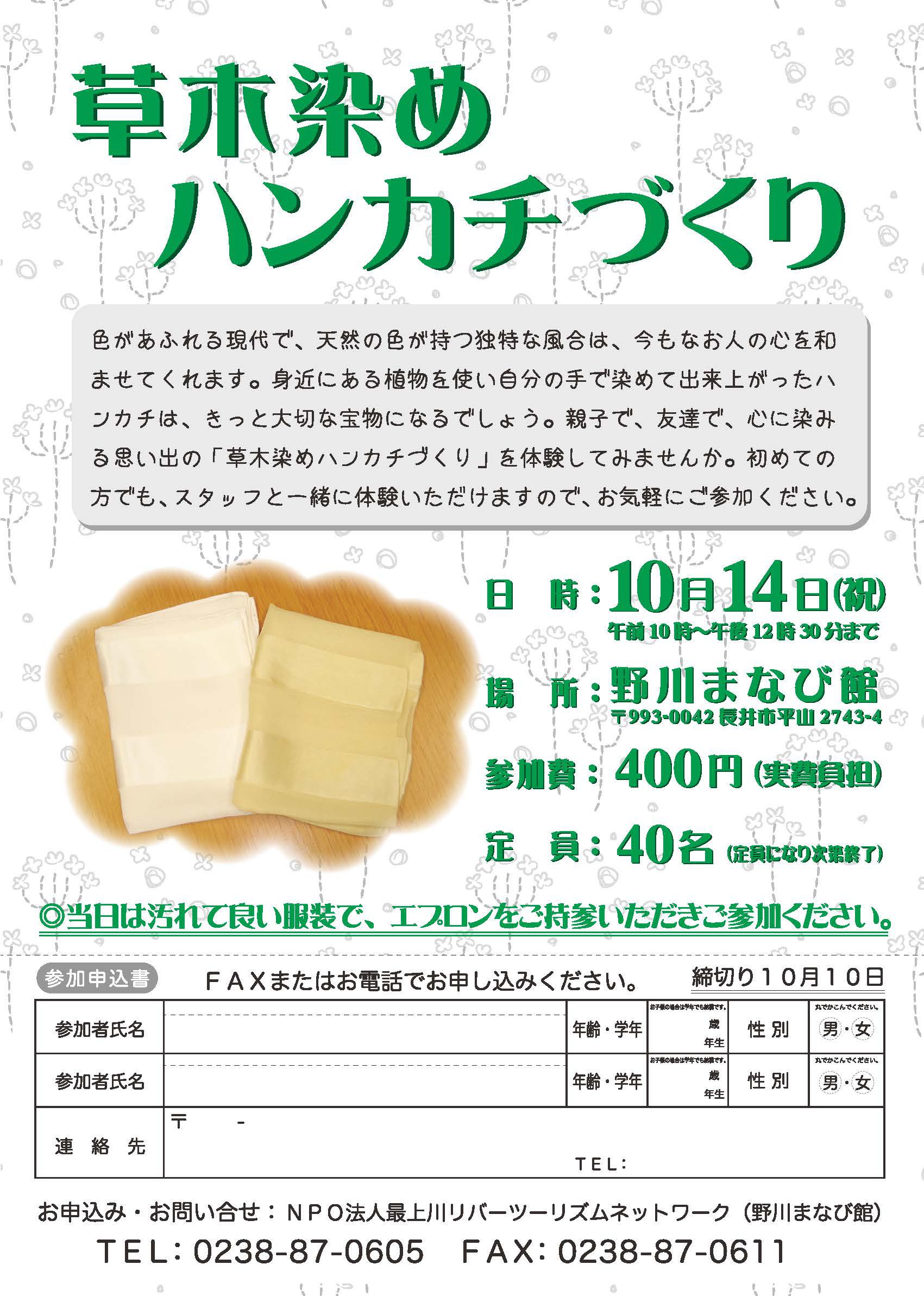 お申込み・お問い合わせ:野川まなび館 0238-87-0605