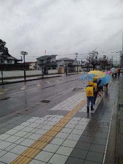 みんな一列になり、まだまだ大きくみえるランドセルを背負って頑張って帰ってきましたよ。