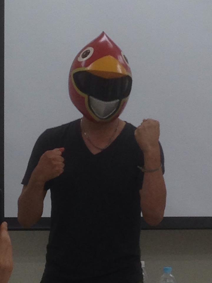 ピースマンの大事な大事な頭の部分をかぶらせて頂きました!