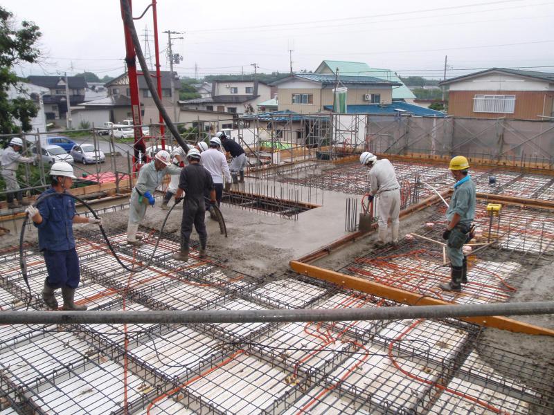 写真は1階躯体コンクリート打設を行っている様子になります。