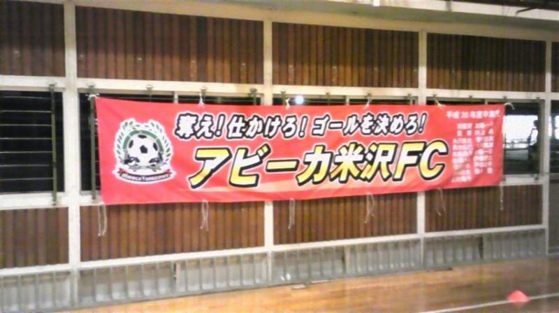 本日、体育館のトレーニングでアビーカ米沢FC、初の横断幕のお披露目がありました。
