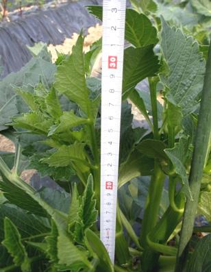 5月28日に摘芯した株も3週間が経過し、全体の草丈が30p程度になりました。なお、3節目の枝は17pになっています。