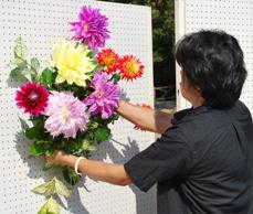 ダリア園ならではの演出、ダリアの切り花を贅沢につかい会場の装飾を行いました。