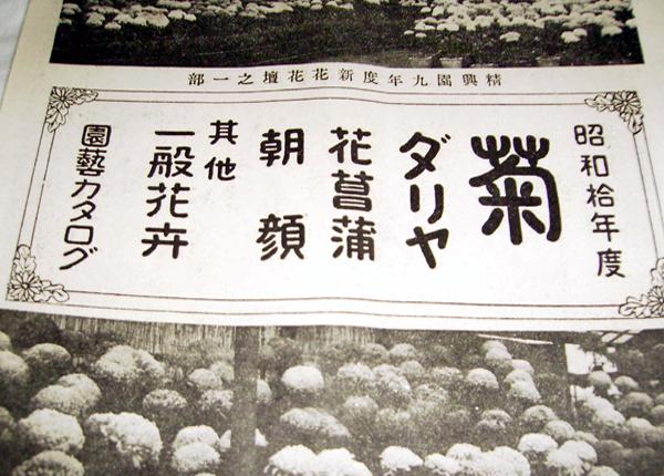 写真は、昭和十年発行の精興園園芸カタログ(広島県)「菊・ダリヤ・花菖蒲・朝顔・その他一般花卉」です。