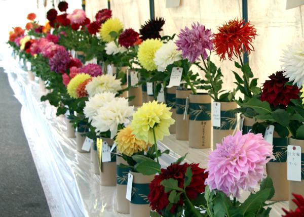 「超巨大輪の部」「巨大輪の部」「大輪の部」「中大輪の部」「中輪の部」「小輪の部」「ポンポンの部」「競技花の部」「実生の部」「鉢植えの部」の各部門で熱い戦いが行われました。
