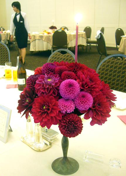 ダリアが沢山使われていて、とても贅沢な雰囲気でした。