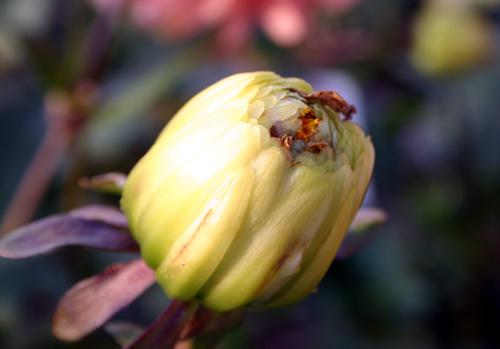 ダリアの種子は登熟期間中に寒さ(凍結、霜)に合うと未熟なままで止まってしまいます。そのために、10月末から霜が降り始める北国では、大輪以上の品種改良が無理であると言われています。(温暖化で北国でも降霜期が遅くなっているちてんがありますが)