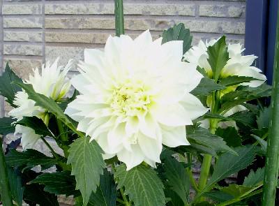 秋田鷲沢氏が作出した、中輪・ID−L(インフォーマルデコラにフリル)、花色;白芯クリーム、草丈:中性(100p前後)