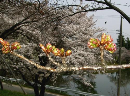 写真:川西ダリヤ園のヤエザクラも蕾が大きなリました。