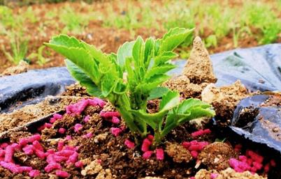 上の写真に写る株元のピンクの粒は「ネキリトン」と言う農薬です。