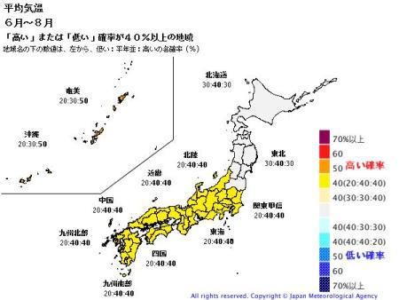 それによると、東北以北は平年並み、関東以西は暑い夏になる予報になっています。