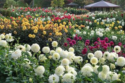 ・川西ダリヤ園は一面にダリアが咲き誇る、来園者の 感動、歓声が鳴り響く。
