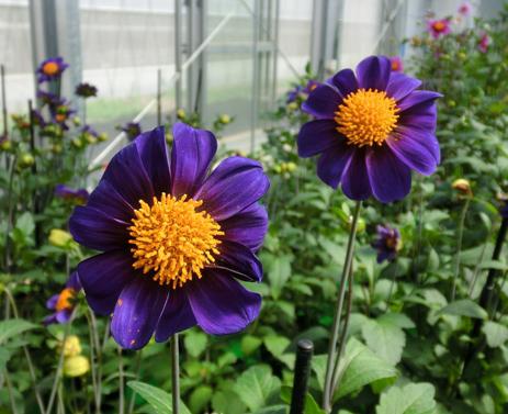 6月30日に千葉大学園芸学部を訪れ、温室を見学させていただきました。一面に広がる青の世界に、ただただ驚きの時を過ごしました。この研究がダリアの品種作りに新しい風を吹き込んでくれそうです。