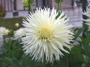 花径:中大輪(20センチ程)、花型:STC(ストレートカクタス、外巻きの花弁が真直ぐ伸びる)、花色:雪白色、草丈:中性(1〜1.2m)