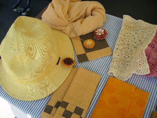 先日、秋田国際ダリア園で「素敵に染め上げられた帽子」を見た。話によると「ダリア染め」教室での残った液に淡いベージュの帽子を入れてみたら、淡い黄色に染め上がったとのこと、見るととても上品でいい感じ。