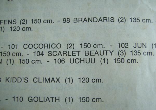 写真は、ベルギーマーチン社のダリアカタログの中に「宇宙」が載ったことを表しています。1966年(昭和41年)のカタログです。なお下欄には「キッド・クライマックス」の文字が見えます。